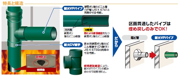耐火性能を持つ塩ビ管・継手が火災の際の延焼を防止。