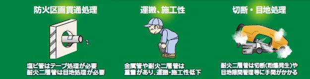 区画貫通処理いらずで施工が簡単。施工管理も容易で省力化を実現。