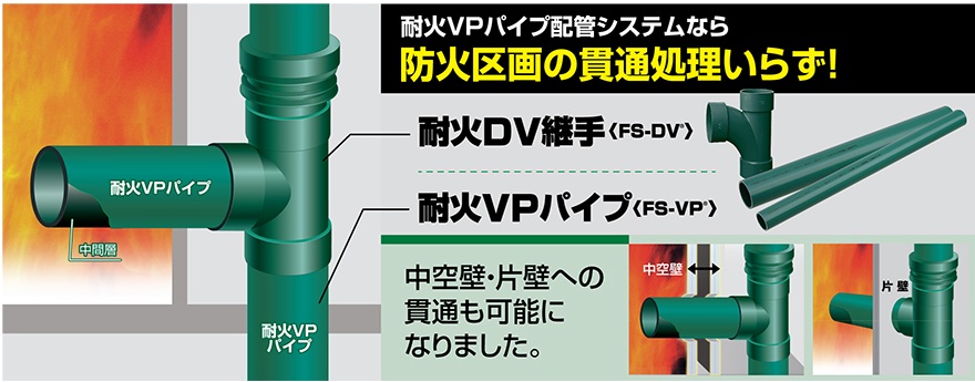さらに、呼び径200の登場で、排水・通気分野でオール耐火VPでの配管が可能となりました。