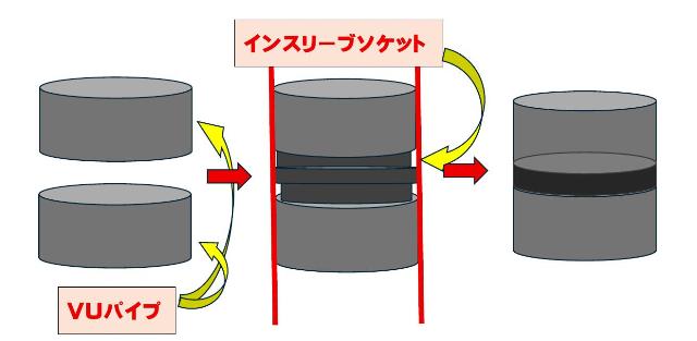 インスリーブソケットは、切断されたVUパイプの配管に使用される特殊な継手です。両側がVUパイプの内側に入るように設計されており、パイプの延長や破損箇所の補修に用いられます。パイプ内の内径に接続できる商品です。